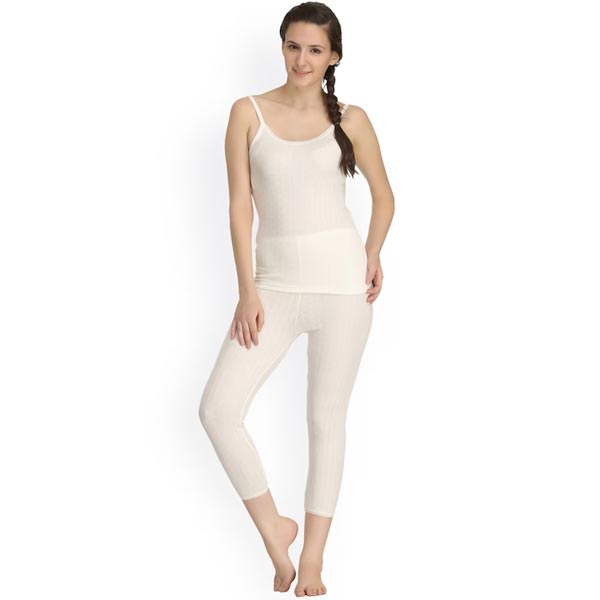 Thermals and CamisolesThis off-white thermal set consists of a top and a pair of leggings